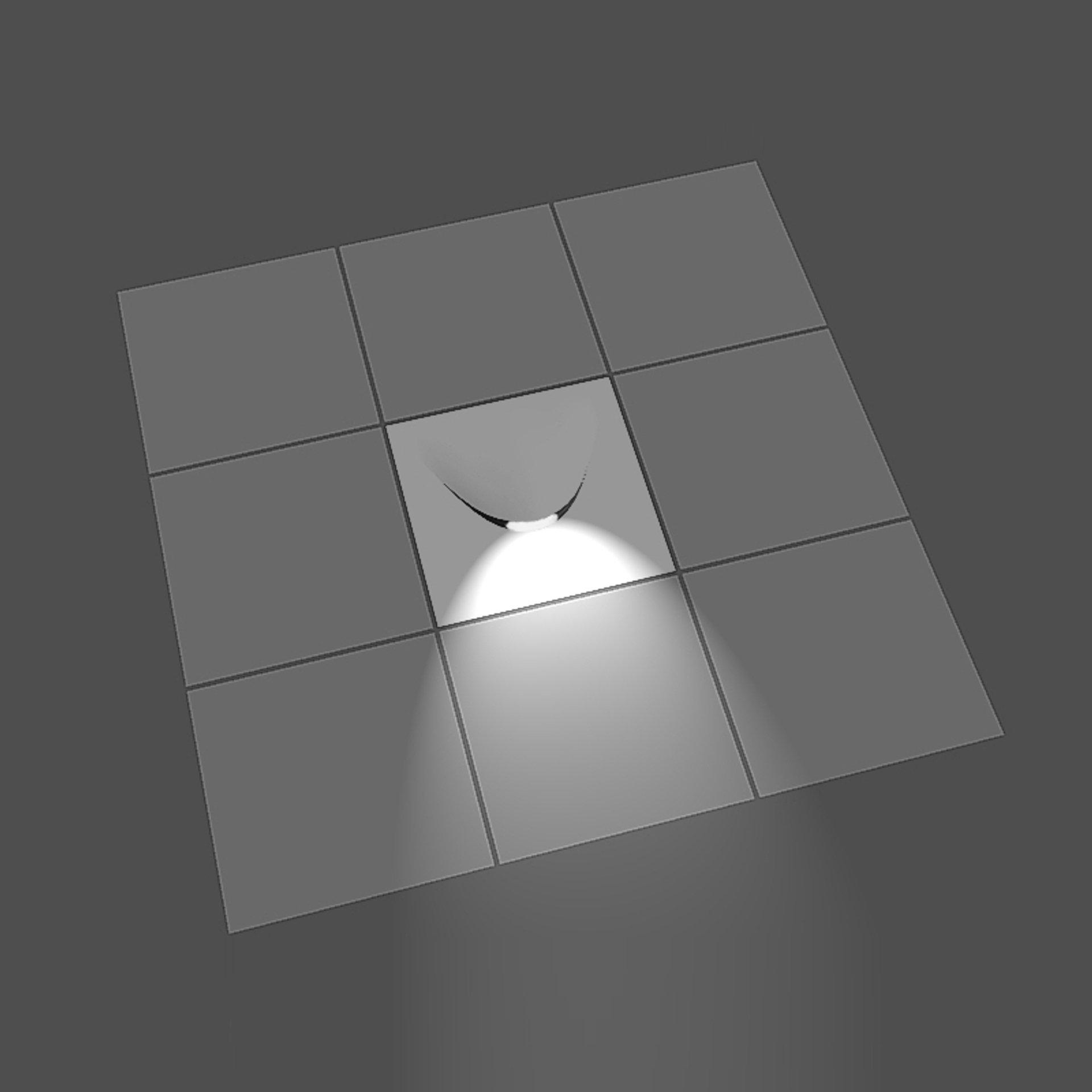 Initially proposed to GE Lighting and then produced by Martini, this projector was characterized by an unusual irregular truncated cone shape designed to accommodate HDI lamps positioned horizontally in order to have a recessed depth contained within 100 mm. This would have made it the least bulky recessed fixture on the market.