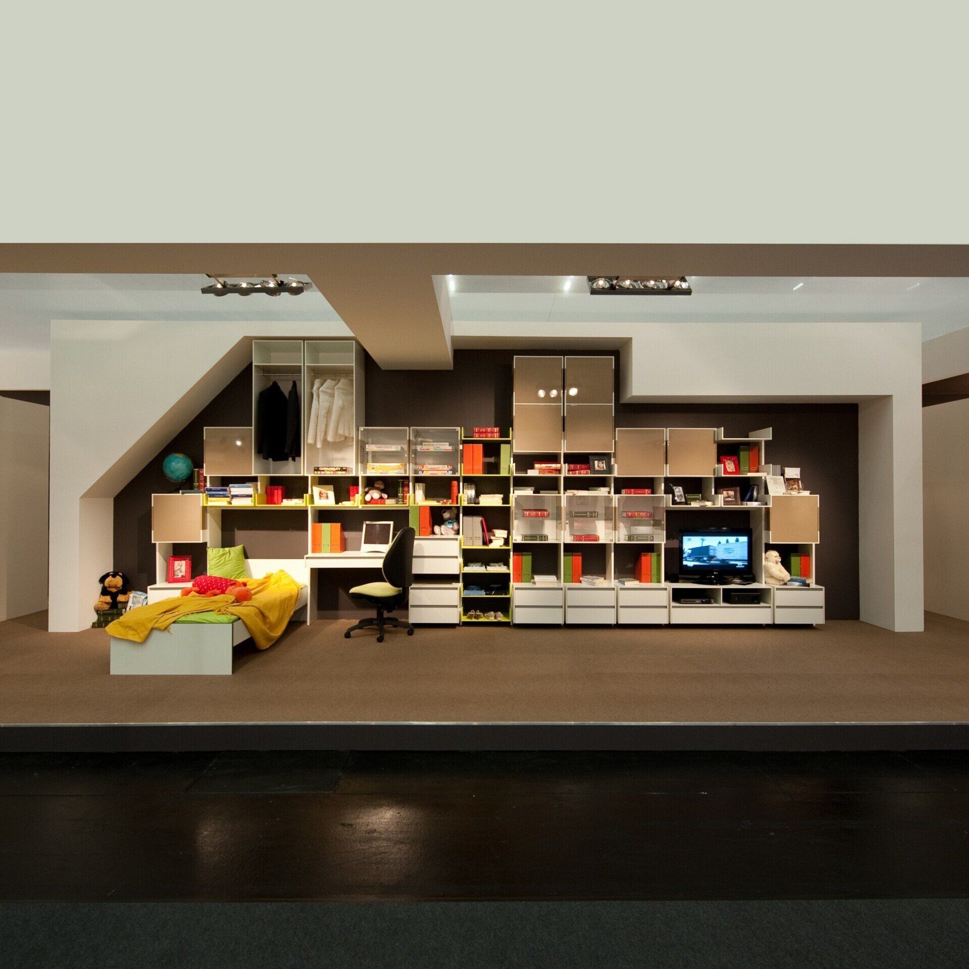The desire to create a TV stand unit that could also be used as an aggregate module for trade fairs and sales outlets took concrete form in Hexagon, whose geometry in plan traced the outline of kinescope televisions and allowed the composition of free display geometries.
