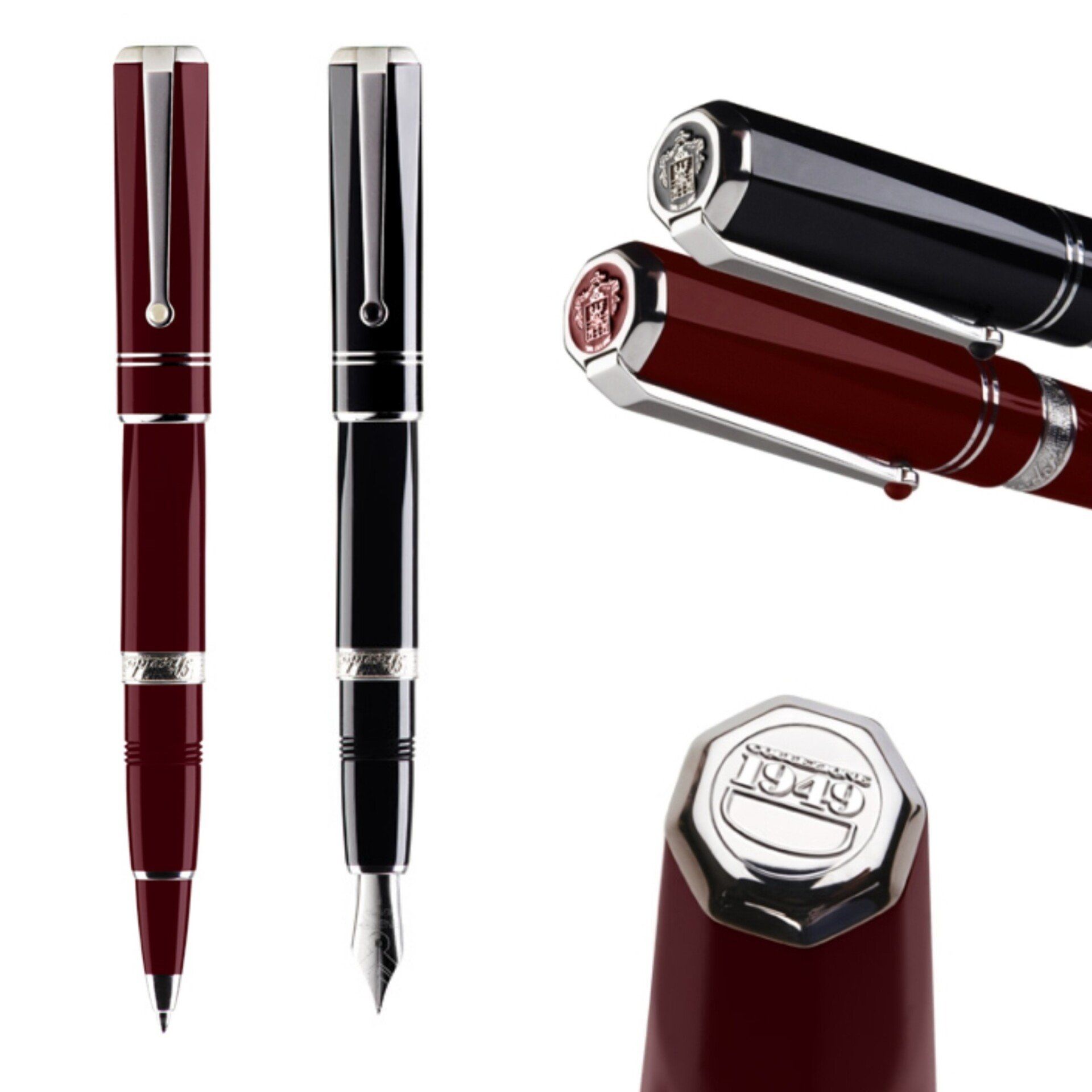 The inspiration came from the Pineider coat of arms which contains two towers with Ghibelline battlements. Anyone has heard about the ancient strife between the Guelphs and the Ghibellines, just as they have heard of one of our most famous sons, the “fugitive Ghibelline” Dante Alighieri, the founding father of Italian literature. Beyond this, the motif of the battlement also encloses in itself a very powerful architectural message, and one which is essential to an effective expression of Tuscanness in a strictly artistic sense. The end part of the lid is therefore a stylisation of the Ghibelline battlement, but also the variegated and imaginative contour of two hills from our splendid Sienese landscape, traversed by the clip, an ideal representation of a river which gushes from its source (the stone on the back) flowing downwards in a slender drop shape. In a world of pens shaped like revolution solids that can be produced with a simple lathe, the differentiated development of the two main sections, harmoniously combined, is original. With Egosphere the concept of "morphing" is introduced, which leads to more articulated volumes that can be produced with multi-axis machining centres. Later, various manufacturers will follow this concept example in the production of writing instruments. In 2001 Egosphere was selected by Michele de Lucchi for publication in The international Design Yearbook.